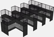 Grey Shared L-Shaped Office Cubicle Panel System For 8 Persons