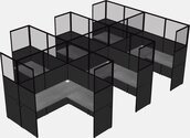 Grey Shared L-Shaped Office Cubicle Panel System For 6 Persons