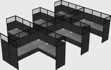 Grey Shared L-Shaped Office Cubicle Panel System For 6 Persons