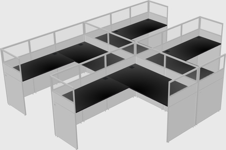 Black Shared L-Shaped Office Cubicle Panel System For 4 Persons