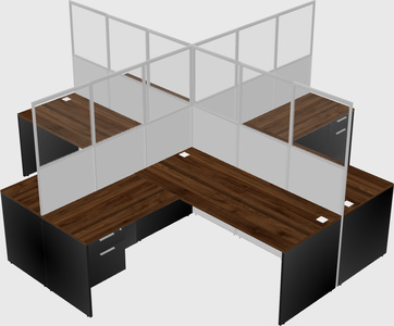 Columbia Walnut L-shaped Quad Office Cubicles Hanging Drawers