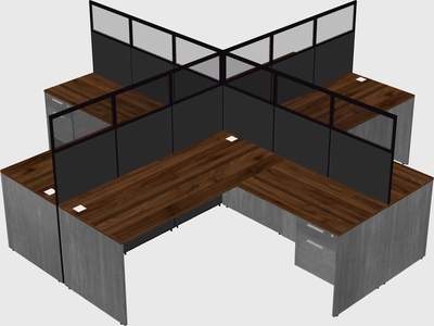 Columbia Walnut L-shaped Quad Office Cubicles Hanging Drawers