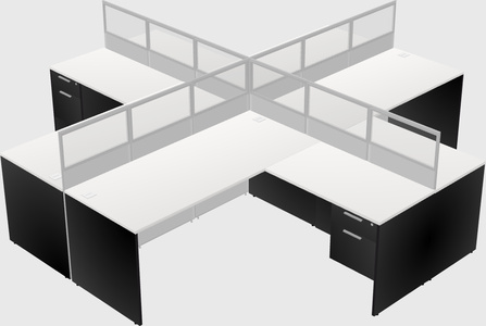 White L-shaped Quad Office Cubicles Hanging Drawers