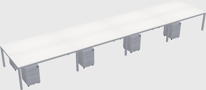 White Shared Rectangular Office Desk With Metal Mobile Drawers For 8 Persons