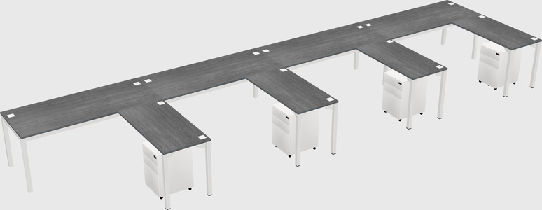 Grey Shared Rectangular Office Desk With Metal Mobile Drawers For 4 Persons