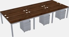 Columbia Walnut Shared Rectangular Office Desk With Metal Mobile Drawers For 2 Persons