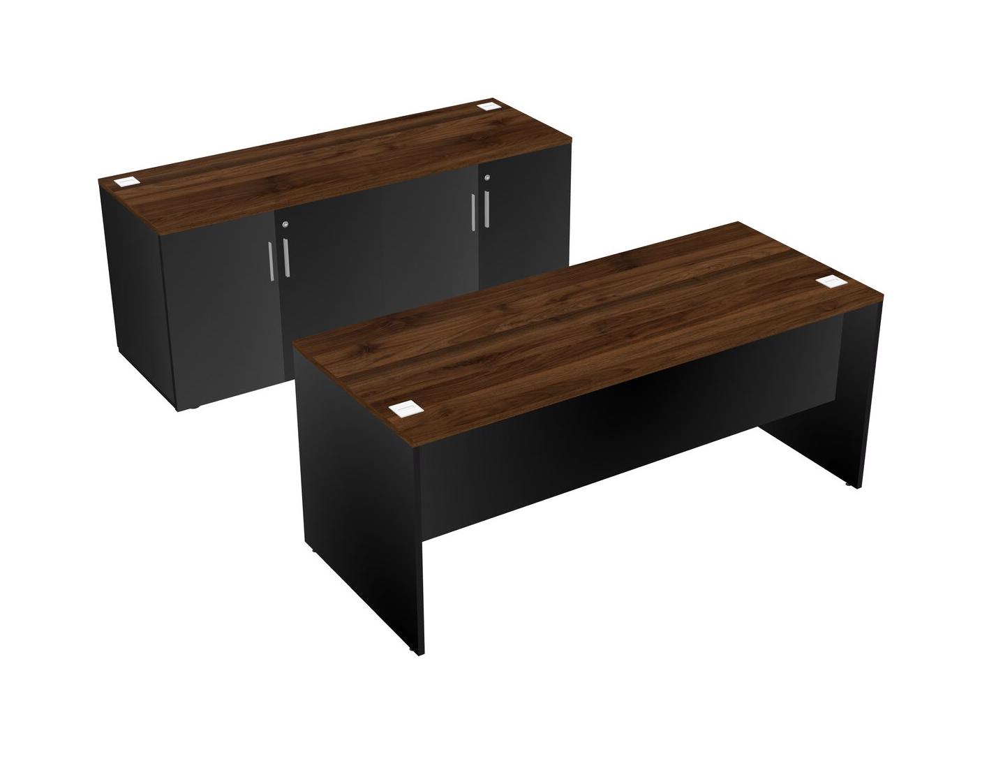 Columbia Walnut Office Parallel Desk With Storage Cabinet