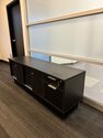 Grey Low Sliding Door Cabinet With Built-in Drawers