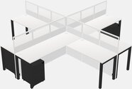 White L-shaped Quad Office Cubicles Mobile Drawers