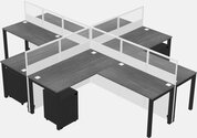 Grey L-shaped Quad Office Cubicles Mobile Drawers