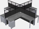 White L-shaped Quad Office Cubicles Mobile Drawers