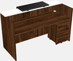 White Modular Reception Desk With Floating Counter And Wooden Mobile Drawers