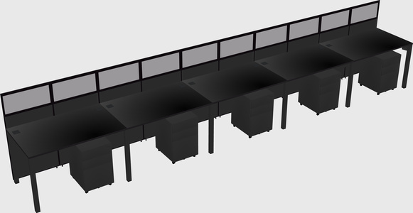 Black Rectangular Office Desk With Metal Mobile Drawers