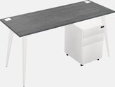 Grey Home Office Desk With Metal Mobile Drawers Light Use/frameless System
