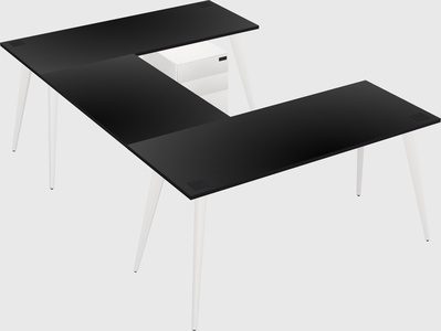 Black U-shaped Office Desk Plus Metal Mobile Drawers