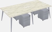 White Shared Rectangular Office Desk With Metal Mobile Drawers