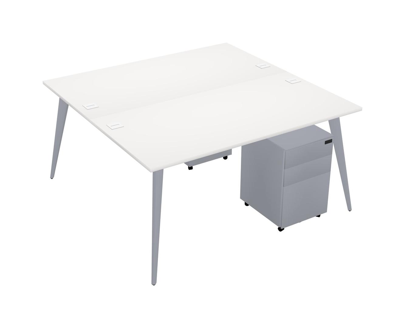 White Shared Rectangular Office Desk With Metal Mobile Drawers