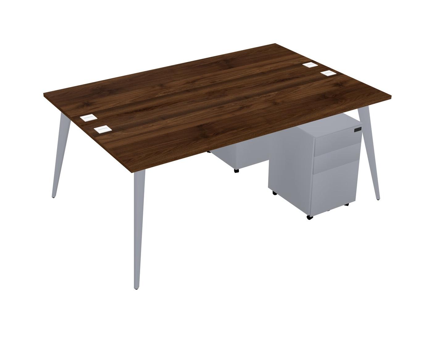 Columbia Walnut Shared Rectangular Office Desk With Metal Mobile Drawers