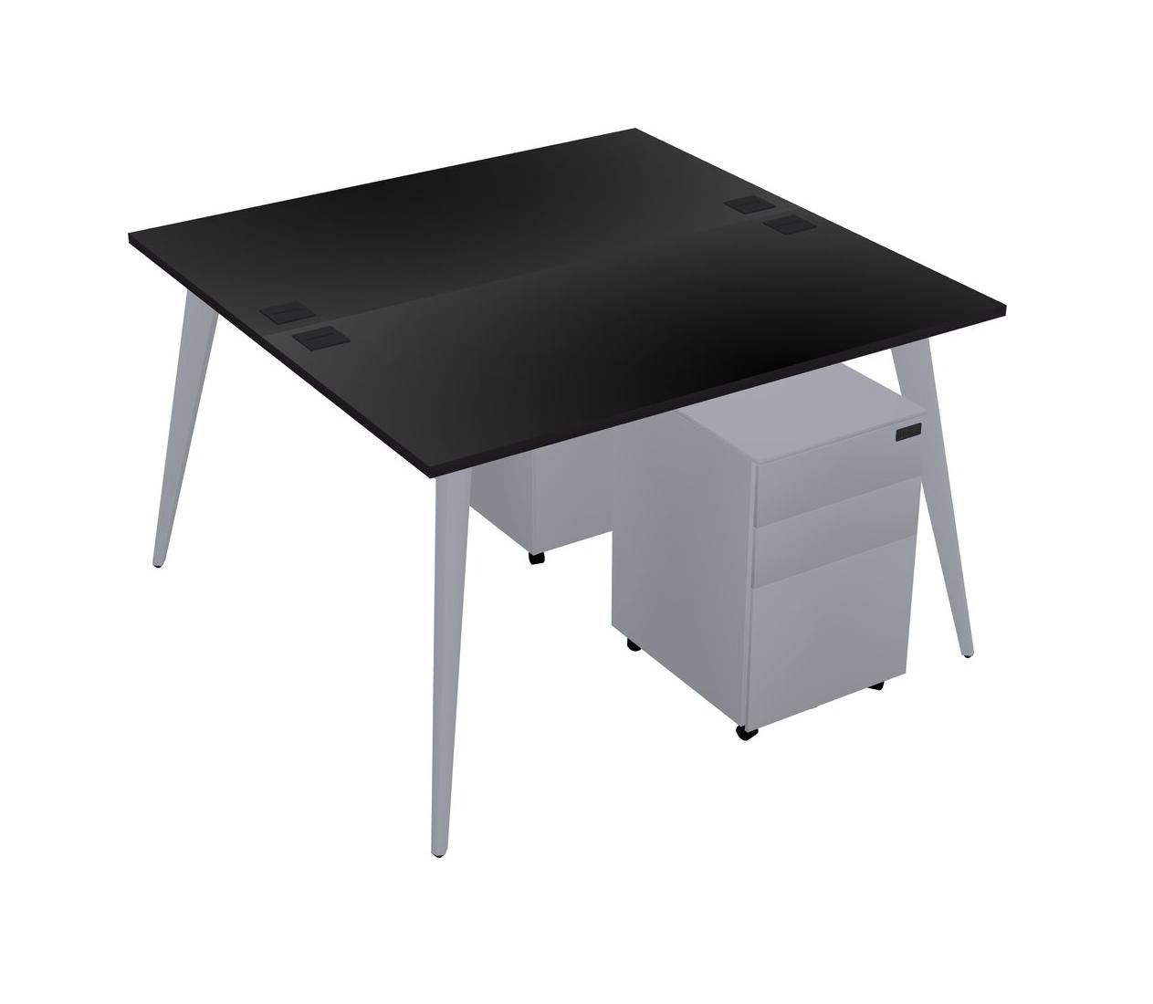 Black Shared Rectangular Office Desk With Metal Mobile Drawers