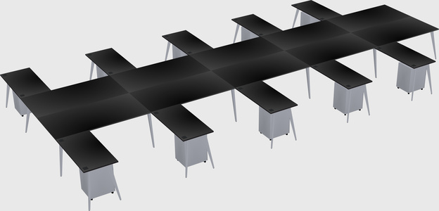 Black Shared L-shaped Office Desk With Metal Mobile Drawers