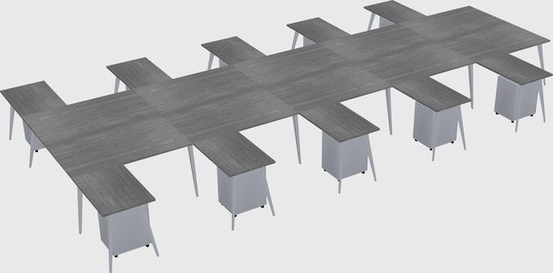 Grey Shared L-shaped Office Desk With Metal Mobile Drawers