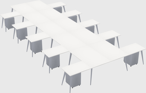 White Shared L-shaped Office Desk With Metal Mobile Drawers