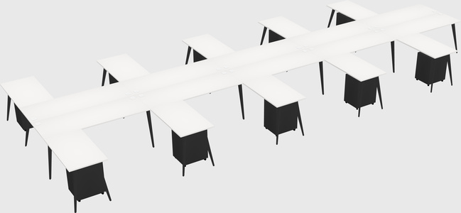 White Shared L-shaped Office Desk With Metal Mobile Drawers