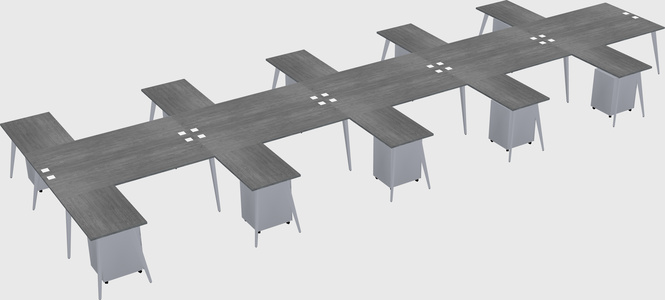 Grey Shared L-shaped Office Desk With Metal Mobile Drawers