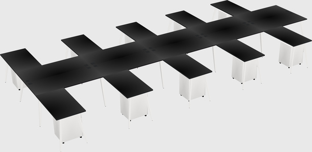 Black Shared L-shaped Office Desk With Metal Mobile Drawers