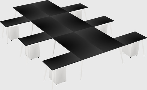 Black Shared L-shaped Office Desk With Metal Mobile Drawers