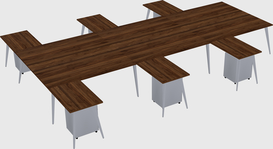 Columbia Walnut Shared L-shaped Office Desk With Metal Mobile Drawers