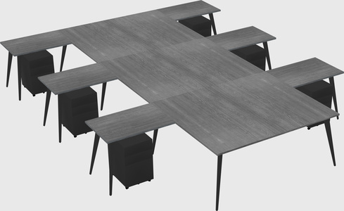 Grey Shared L-shaped Office Desk With Metal Mobile Drawers