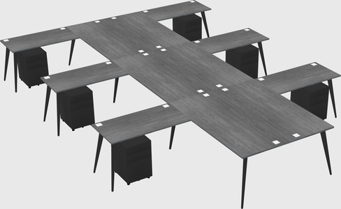 Grey Shared L-shaped Office Desk With Metal Mobile Drawers