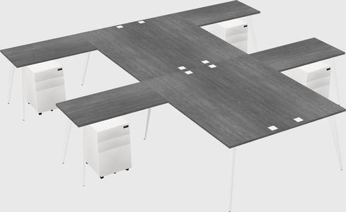 Grey Shared L-shaped Office Desk With Metal Mobile Drawers