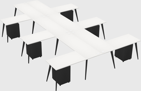 White Shared L-shaped Office Desk With Metal Mobile Drawers