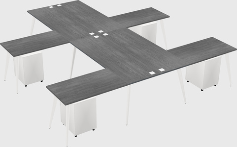 Grey Shared L-shaped Office Desk With Metal Mobile Drawers