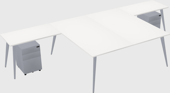 White Shared L-shaped Office Desk With Metal Mobile Drawers