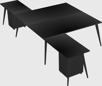 Black Shared L-shaped Office Desk With Metal Mobile Drawers