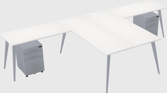 White Shared L-shaped Office Desk With Metal Mobile Drawers