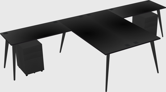 Black Shared L-shaped Office Desk With Metal Mobile Drawers