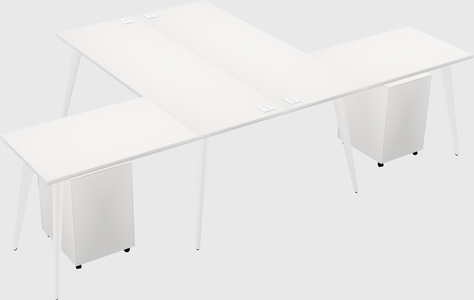 White Shared L-shaped Office Desk With Metal Mobile Drawers