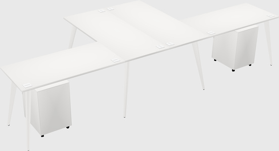 White Shared L-shaped Office Desk With Metal Mobile Drawers