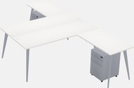White Shared L-shaped Office Desk With Metal Mobile Drawers