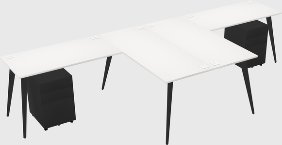 White Shared L-shaped Office Desk With Metal Mobile Drawers