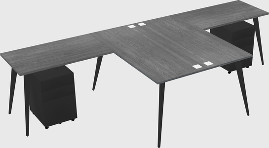 Grey Shared L-shaped Office Desk With Metal Mobile Drawers