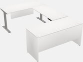 White U-shaped Dual Motor Electric Height Adjustable Desk With Modesty Panel - Commercial Grade