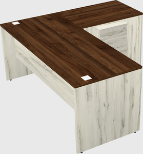 Columbia Walnut L-shaped Office Desk With Heinne Holz Wooden Mobile Drawers