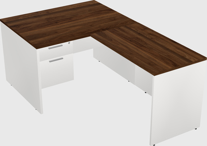 Columbia Walnut L-shaped Office Desk With White Hanging Drawers