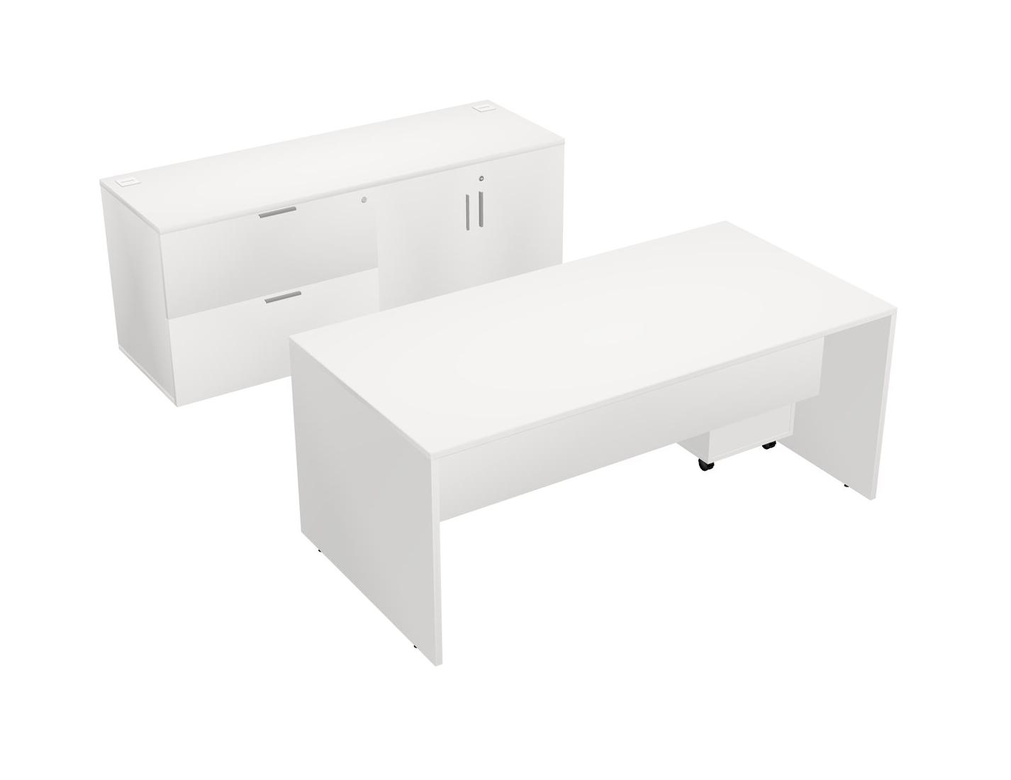 White Office Parallel Desk With Lateral Storage Combo + Wooden Mobile Drawers