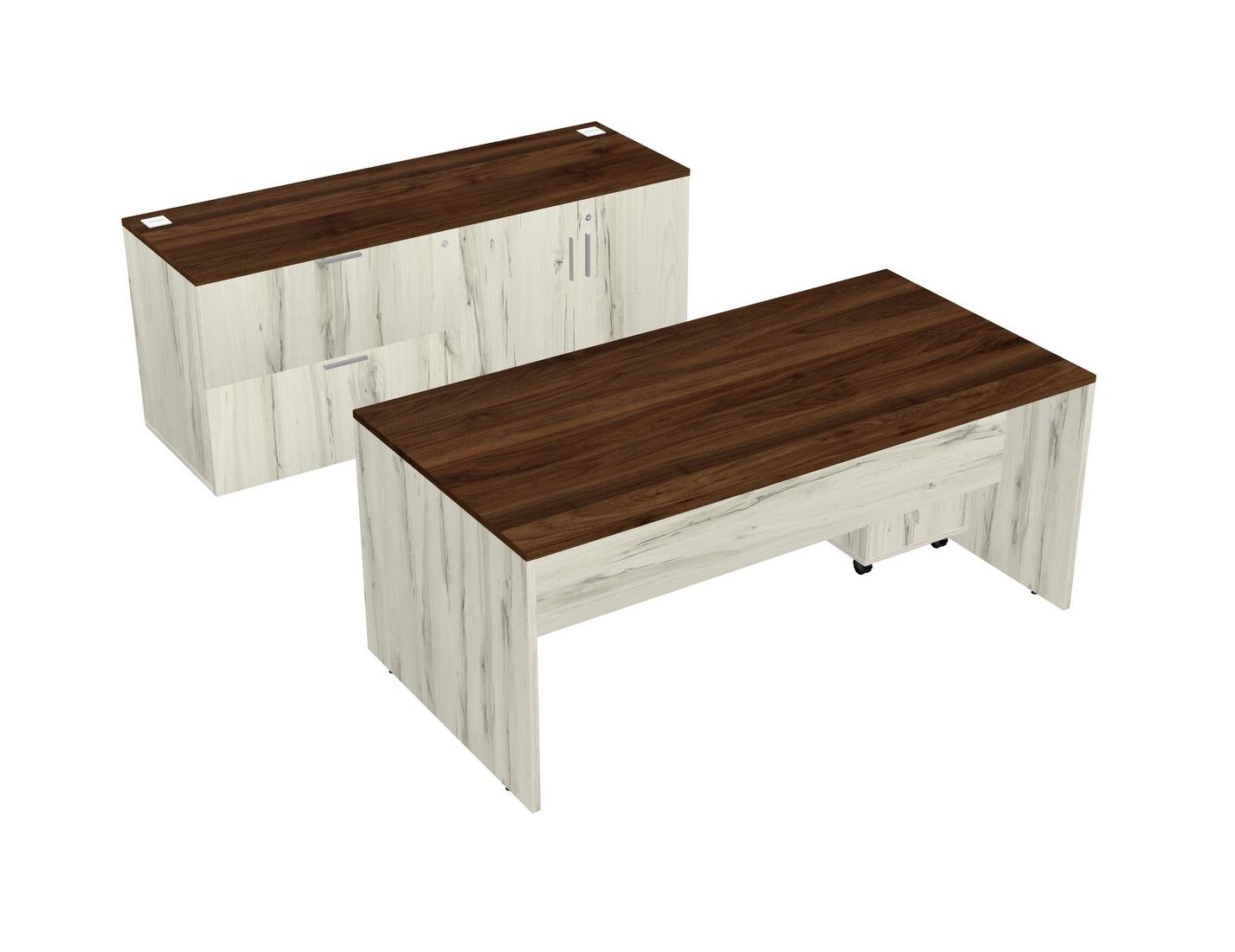 Columbia Walnut Office Parallel Desk With Lateral Storage Combo + Wooden Mobile Drawers